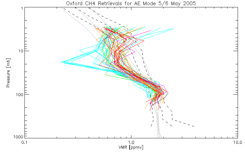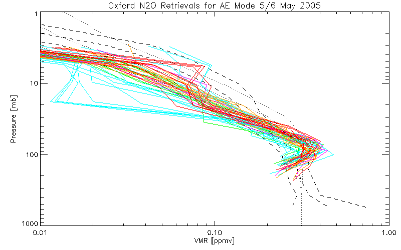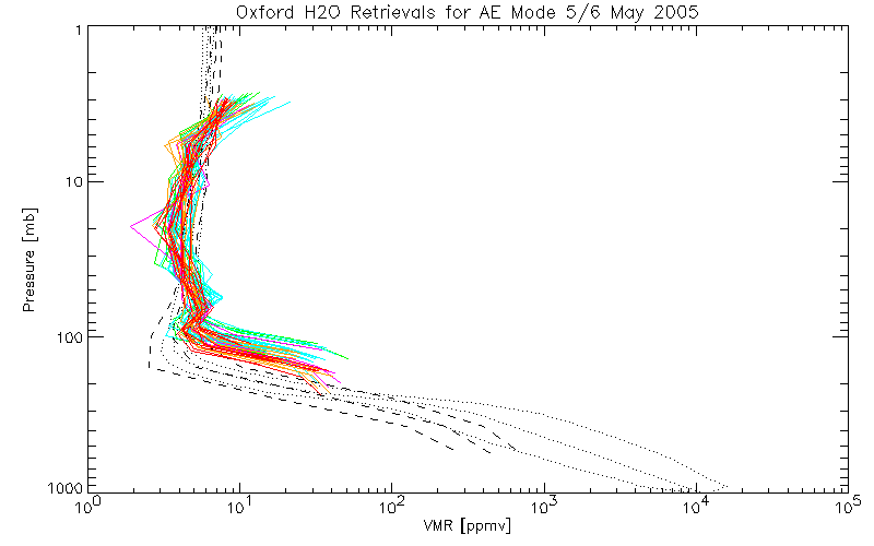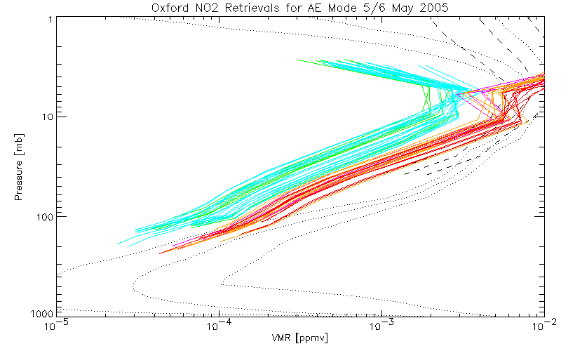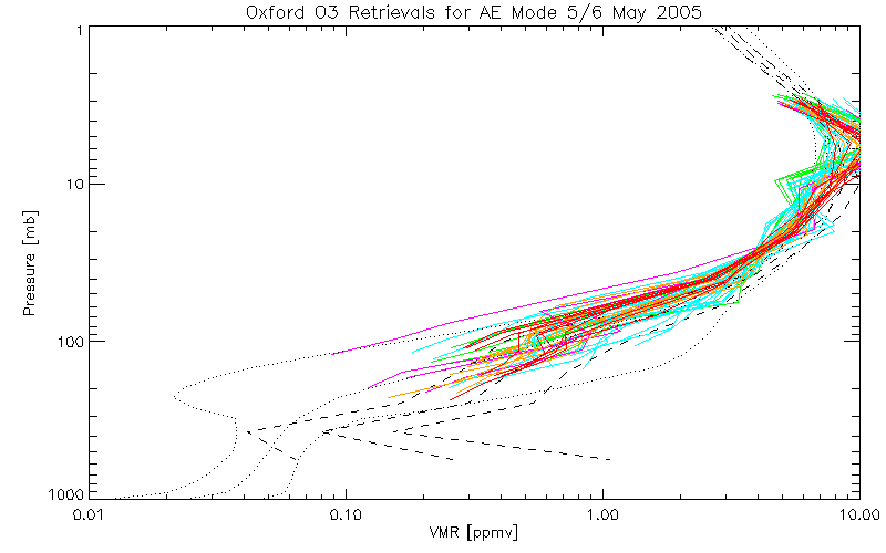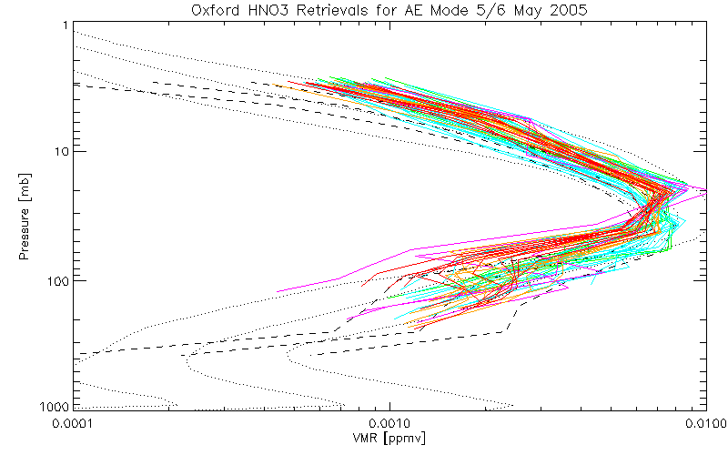 from MIPAS OFL data May 2003 for 20N-65N, central lines are mean while