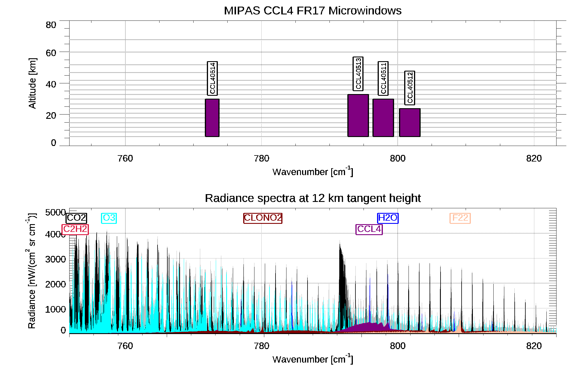 | H2O CO2 O3 HNO4 CLONO2 CCL4 F22 PAN C2H6 HNO3 C2H2 COF2 HCN N2O5 F113