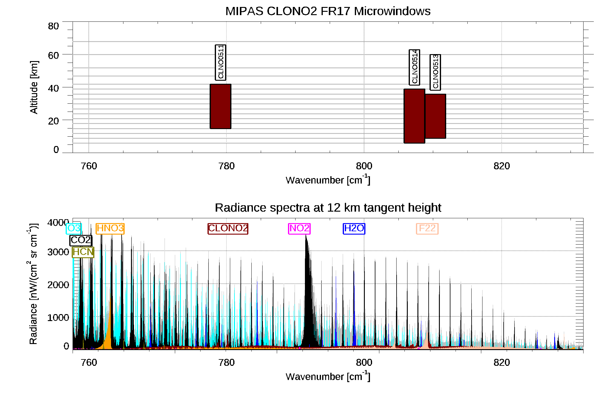 | CLNO0514 | 805.8250 | 808.8250 | 6.0 | 39.0 | H2O CO2 O3 CLONO2 NH3 F22 HNO4 C2H6 NO2 HNO3 PAN CCL4 F113 C2H2 N2O5 |