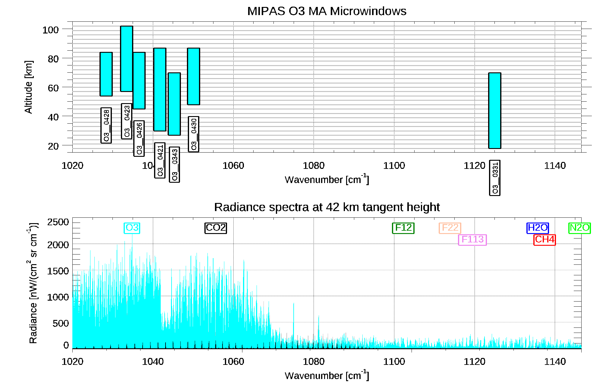 | O3 H2O CO2 C2H2 CLONO2 COF2 HNO3 CCL4 NO2 N2O5 PAN HCN C2H6 NH3 F22