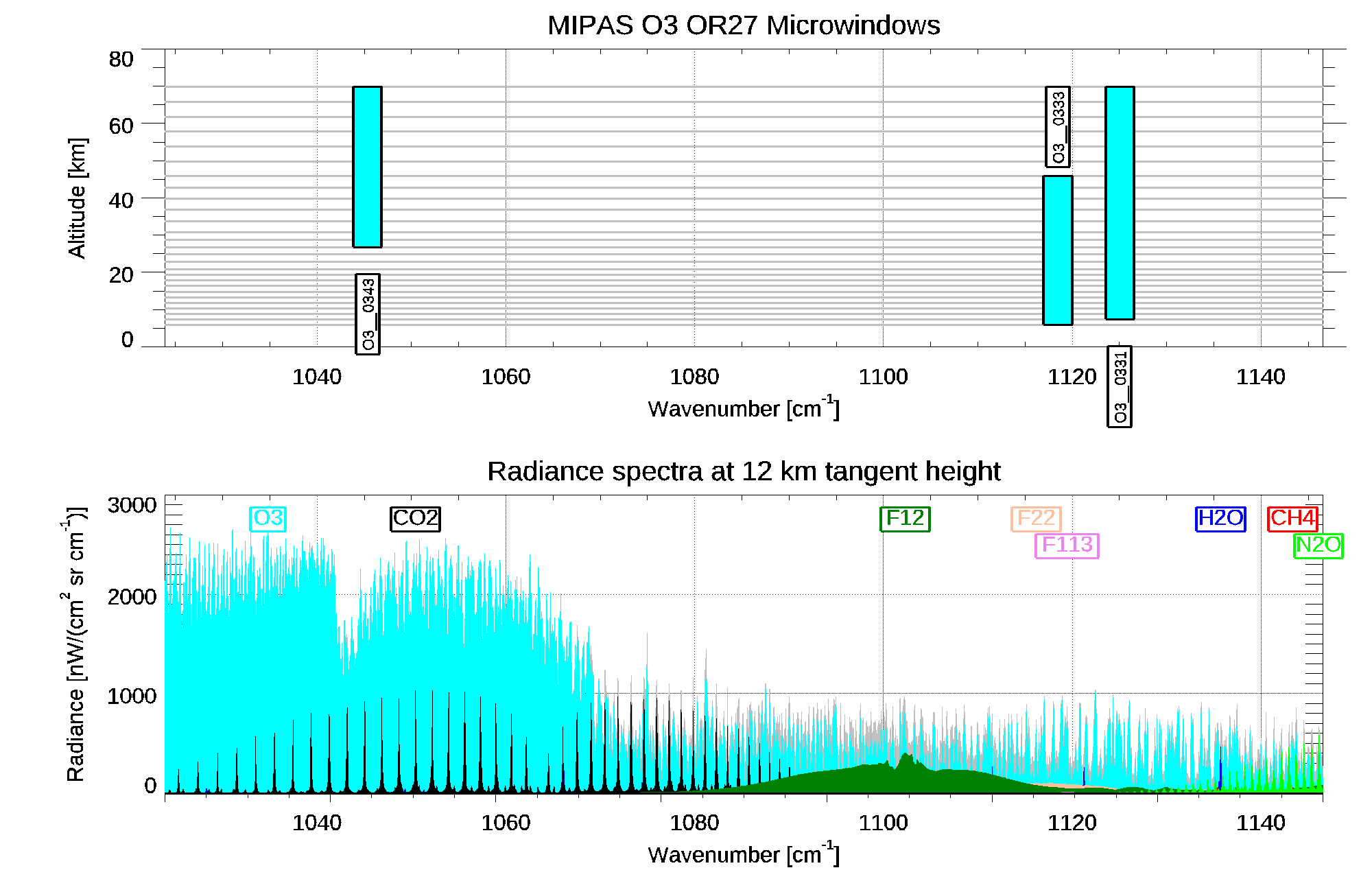 | O3 H2O CO2 OCS C2H4 NH3 F113 F114 N2O PAN CH3CL CH4