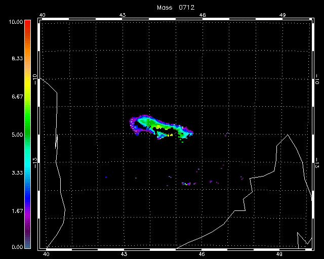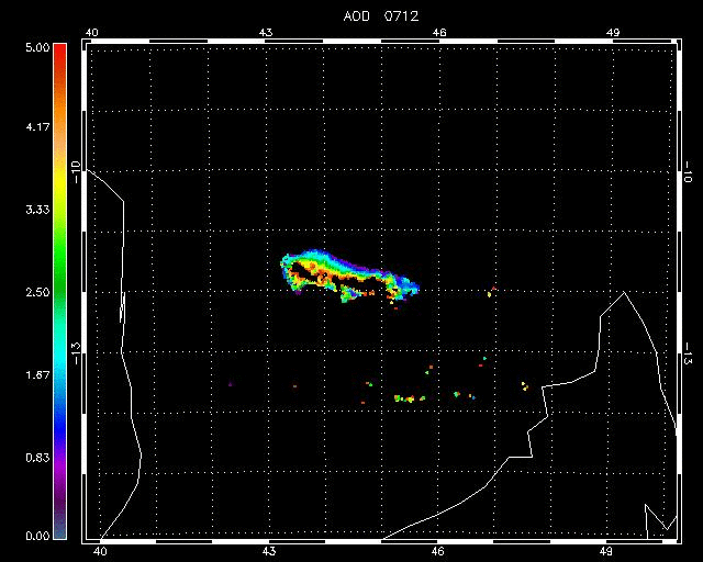 ORAC RETRIEVAL using VIS and IR channelsTo study this volcanic eruption an extended verison of ORAC algorithm have been applied, using the visible and infrared channels. As previouse developed for desert dust retrieval (SEVIRI dust retrieval)